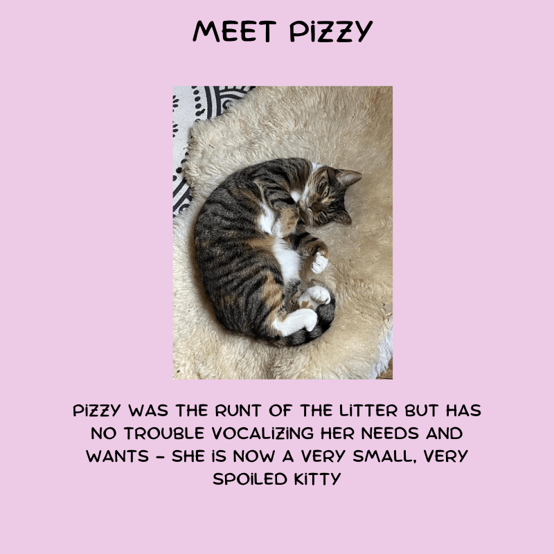 One was the runt, Pizzy, the biggest, Gambit, and the other calico girl, Bean.