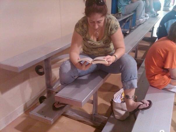 I am a total book junkie. I usually have a book with me everywhere I go. If I have 2 minutes that’s long enough to get through a page or a paragraph depending on the book and how distracted I am.